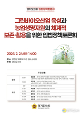 경기도의회, ‘그린바이오산업 육성 및 농업생명자원 보존’ 입법정책토론회 개최