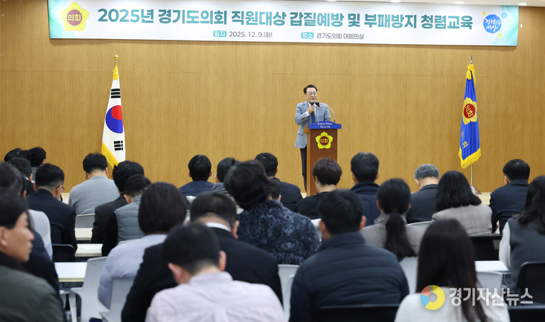 경기도의회는 9일 오전 의회 대회의실에서 전 직원을 대상으로 ‘갑질예방 및 부패방지 청렴교육’을 실시했다.