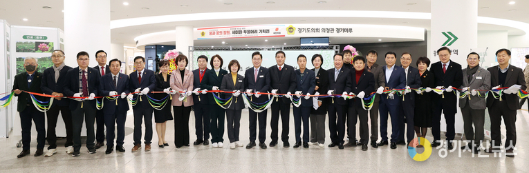 경기도의회 국민의힘(대표의원 백현종)이 지난 10일부터 17일까지 8일간 도의회 1층 로비에서 진행하는 ‘물과 꽃의 정원, 세미원’ 기획전이 12일 개막했다.