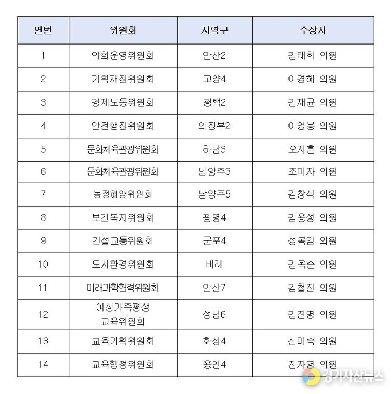 한편 ‘2025년 올해의 의원상’ 수상자는 다음과 같다.