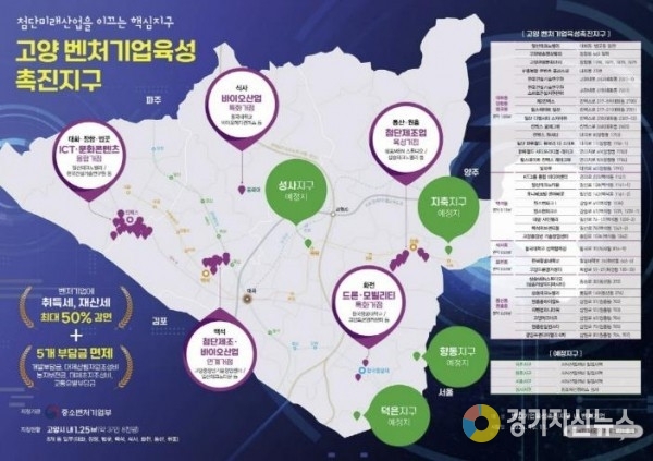 시는 지난해 10월 중소벤처기업부로부터 경기북부 최초로 벤처기업육성촉진지구로 지정됐다. 킨텍스 일원의 일산테크노밸리, 방송영상밸리 등 주요 개발지구와 원흥·백석동 등 주요 지식산업센터 일대를 포함한 총 125만㎡(약 37만 8천 평) 규모이다.