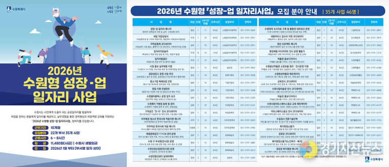 수원특례시가 ‘2026년 수원형 성장-업 일자리사업’에 참여할 시민 46명을 모집한다.