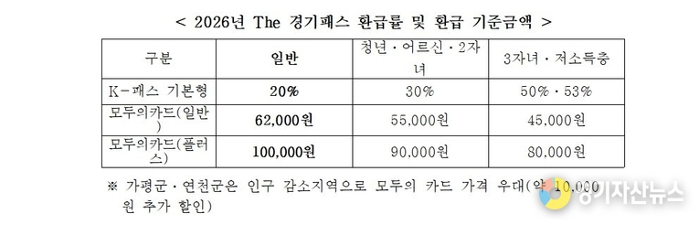 아울러 6~18세 어린이·청소년에게 연 최대 24만 원 범위 내 교통비를 100% 환급하는 ‘경기도 어린이 청소년 교통비 지원 사업’도 계속 추진한다.