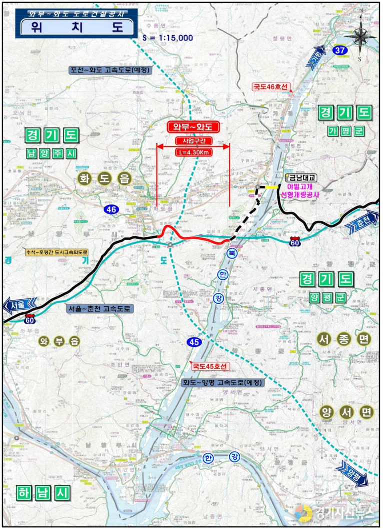 경기도는 2020년 5월 시작한 국지도 86호선 와부~화도 도로공사가 최근 완료돼 오는 13일부터 개통한다고 11일 밝혔다.