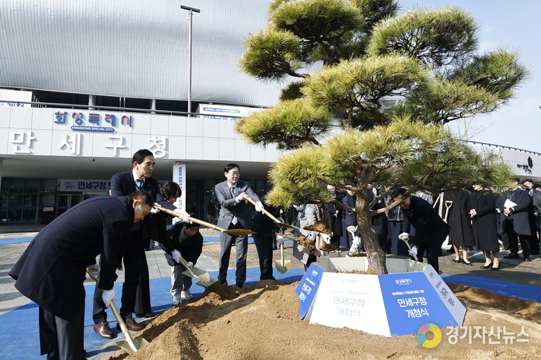 화성특례시는 2일 화성종합경기타운 실내체육관에서 ‘네 개의 구청, 내 곁에 가까이’를 슬로건으로 만세구청 개청식을 열고 4개 구청 체제의 공식 출범을 알렸다.